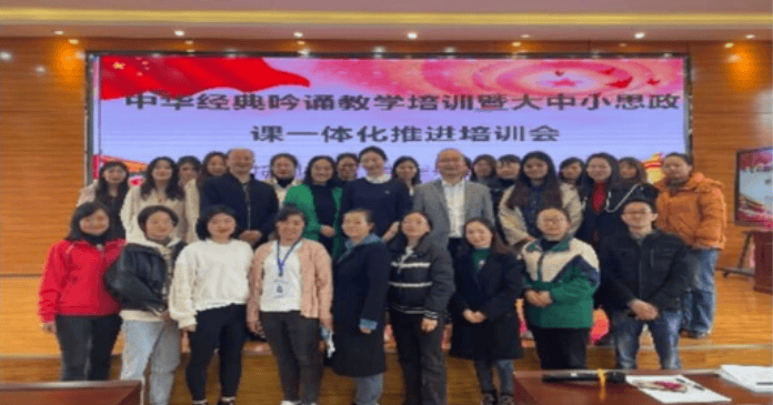 2023年,张运祥有幸参加了教育部中华经典诵写讲骨干教师培训,系统学习普通话吟诵和朗诵。在此前,他先后两次参与国家级经典诵读网络专项培训。后来,不仅参加了吟诵初级班(线上)培训课程,还参加了国家社科基金重大项目《中华吟诵田野调查研究》的编纂工作和国家语委“十三五”科研规划重点课题《古诗文吟诵理论研究与实践推广》(项目编号:ZDI135-123)的研究工作,从一名普通教师成长为中华经典吟诵的推广骨干,并且把吟诵从课堂搬上了社区和学校舞台。