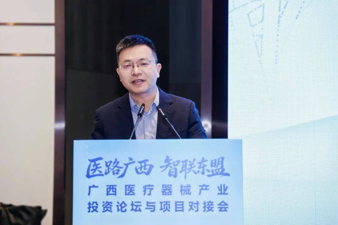 自治区园区投资促进中心副主任周洪波指出,活动旨在贯彻落实自治区关于推进制造业十大现代化支柱产业发展的战略部署,搭建广西医疗器械产业“政府+金融+企业”协同发展的桥梁,促成更多优质产业项目落地广西。他强调,医疗器械产业发展势头强劲、政策红利明显,截至2025年底,广西政府投资引导基金累计实缴超170亿元,撬动其他资本实缴超600亿元;全区二类医疗器械注册数量位居全国第11位,给予第三类医疗器械注册最高100万元奖励,第二类医疗器械审评审批时限缩短50%以上。